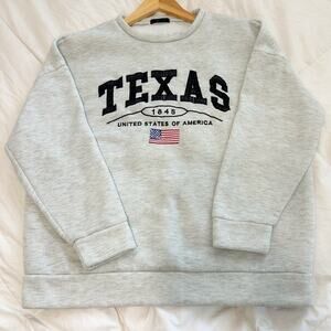 SHEIN Gray Texas Graphic Sweatshirt Women’s Medium USA Flag Pullover Crewneck