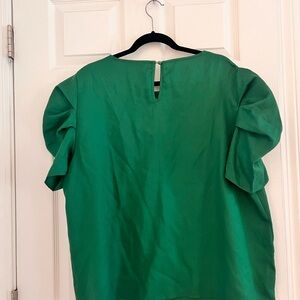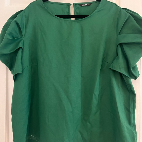 Chic green blouse with puff sleeves. Perfect for stylish outings. This blouse is 4XL in European size, which translates to US size 18.