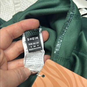 This SHEIN jumpsuit showcases a vibrant green color, offering a sleek silhouette with its form-fitting design and wide-leg pants. The long sleeves add a touch of sophistication, while the waist detail enhances the overall structure for a refined look.