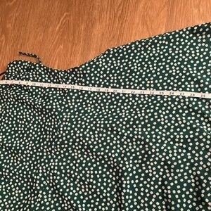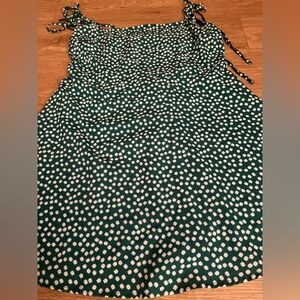 Stylish green top with white floral pattern. Features smocked design and tie straps.