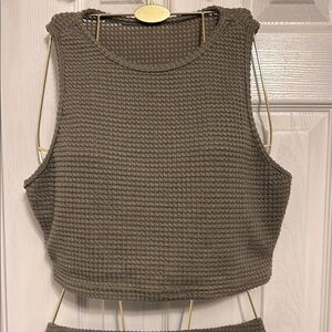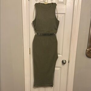 SHEIN Green Ribbed Asymmetrical Bodycon Top & Skirt #448