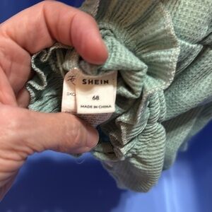 Charming green romper with ruffle straps. Features floral lace front. Ideal for playful days. Gently used.