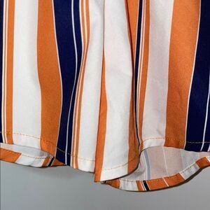 These high waist shorts from SHEIN feature a vibrant orange and blue striped pattern, perfect for a casual summer day. The elastic waistband ensures a comfortable fit, while the light, flowy fabric adds a breezy touch to your outfit.