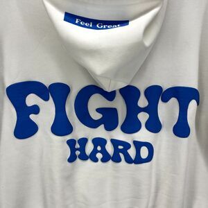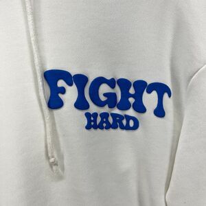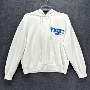 SHEIN Hoodie Womens XS White EZwear Blue Letter Graphic Drawstring Sweatshirt