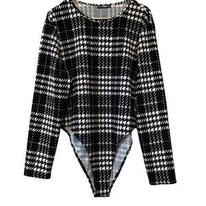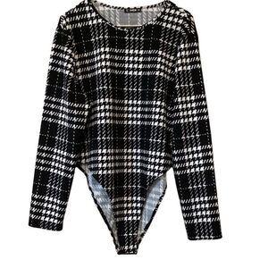 SHEIN Houndstooth Bodysuit Black White 3XL