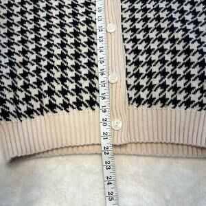 SHEIN Houndstooth V Neck Button Down Cardigan Black/Cream