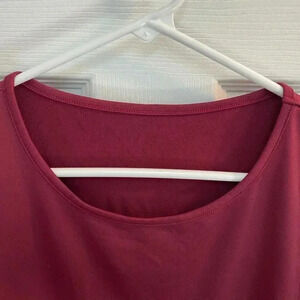 Burgundy red cropped muscle athletic tank top with large arm holes and high neckline.