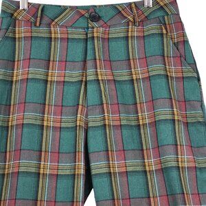 SHEIN Juniors Pants Sz Medium Plaid Red Green 70's Hippie Academia Retro Cuffed