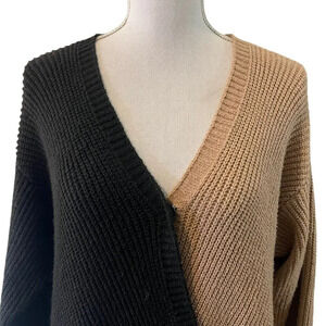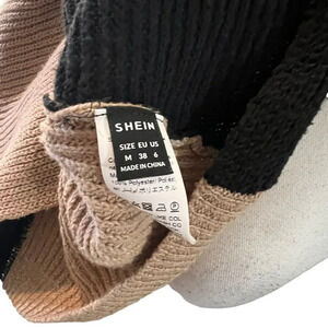 SHEIN Knit Knee Length Dress Medium Draped V Neck Black Tan Colorblock Baggy