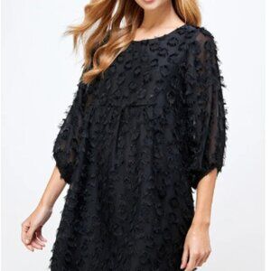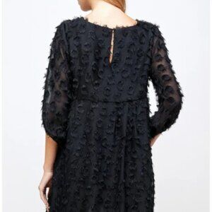 SHEIN (L) A-Line Woven Dress with Swiss floral Dots black Textured Fabric
