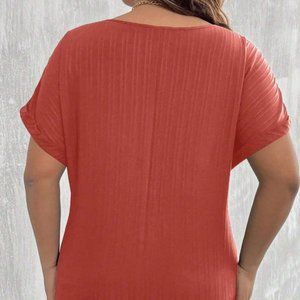 SHEIN LUNE Plus Half Zip Batwing Sleeve Curved Hem Blouse 0XL 12 Burnt Orange