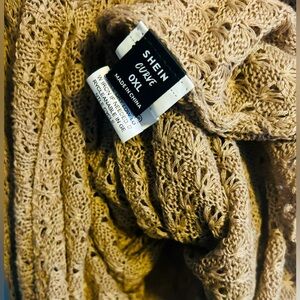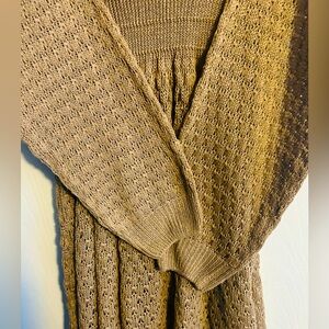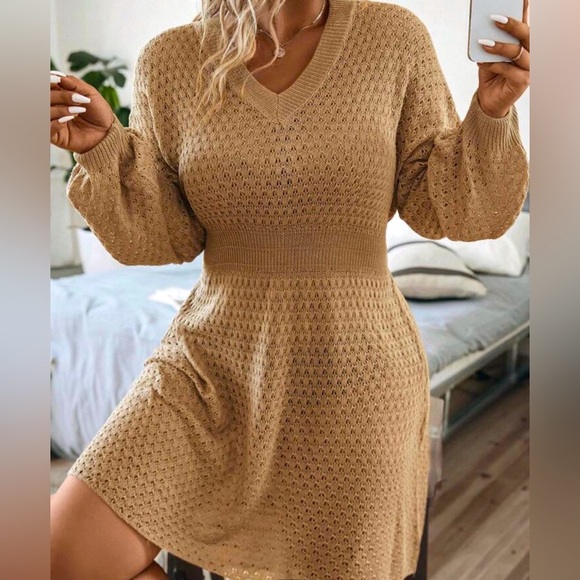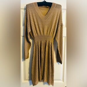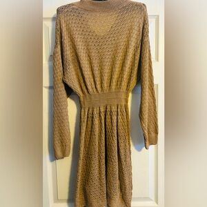 SHEIN LUNE Plus Pointelle Knit Drop Shoulder Sweater Dress, tan, size 0XL