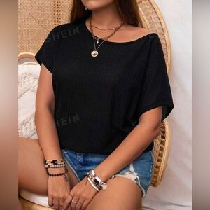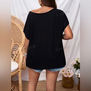 SHEIN LUNE Plus Size Women Summer Solid Color Asymmetric Collar Shirt