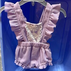 Charming lavender romper with ruffle details. Ideal for a stylish baby outfit. Gently used.