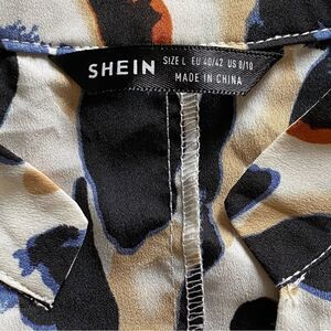 SHEIN Dress Animal Print V Neck Notched Collar Long Sleeve Large
