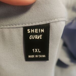SHEIN Light Blue Button-Up Ruffle Blouse