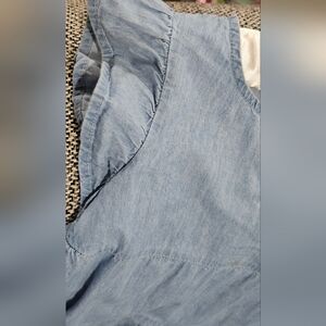 Adorable light blue dress with tiered design. Features flutter sleeves. Ideal for casual wear.