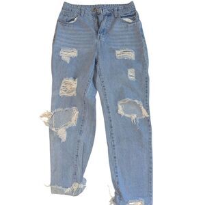 SHEIN Light Blue Distressed Boyfriend Jeans