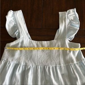 Chic maxi dress with ruffled sleeves. Light blue color. Perfect for casual outings.