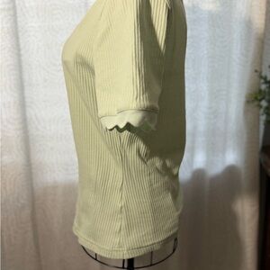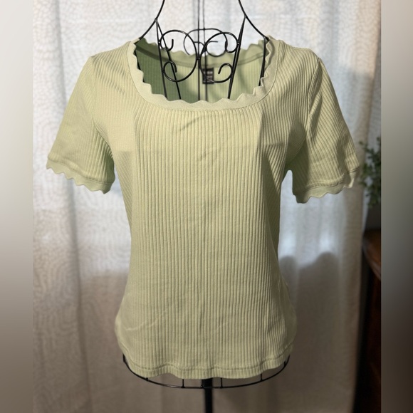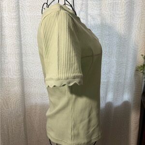 Light green ribbed top with scalloped edges. Short sleeves. Soft and stylish! Worn once. M/6