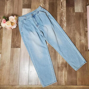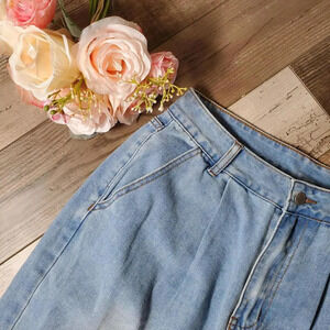 Product details - These are sooo cute! The front pleats make them even more stylish! Love the light wash. Review measurements.