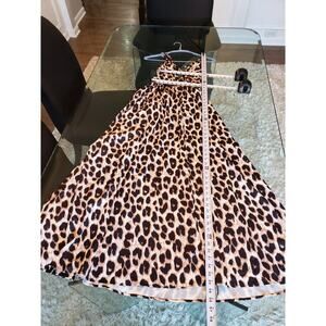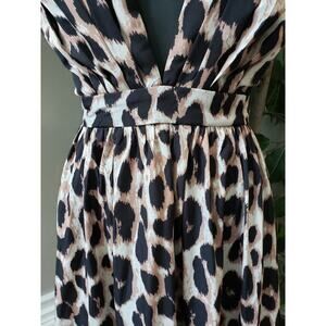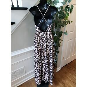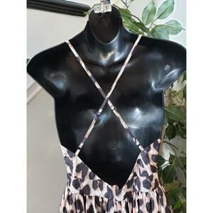 SHEIN Long Maxi Dress Womens Size 2 Black & Beige Leopard Plunge Neck Sleeveless