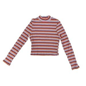 SHEIN Long Sleeve Multi Striped Mock Turtleneck Shirt Size XL Women’s