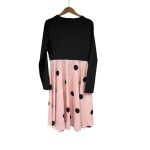 SHEIN Long Sleeve Pink Black Long Sleeve Polka Dot Dress Poodle Skirt Womens XL