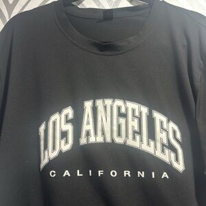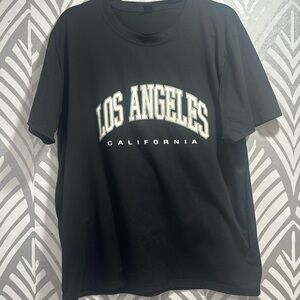 SHEIN Los Angeles black short sleeve t shirt. 100% polyester. Size large. Measures 23.5 inches pit to pit. Length measures approximately 28 inches.