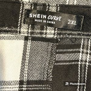 SHEIN Lune Plus Plaid Black White Long Sleeved Flannel Button Women's Size 2XL