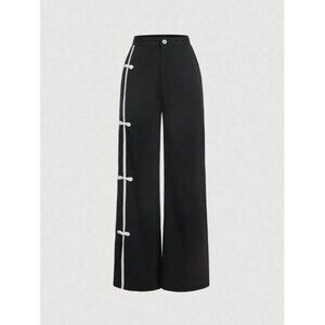 SHEIN MOD Button Contrasting Colors Trousers In Black - Size Medium