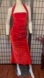 90s red velvet halter dress with a ruched bodice and square neckline. So flattering! #vintage #90s #velvet #halterdress Very stretchy medium could probably fit a Small as well. Top across chest: 28”-30” waist: 26.5” hips: 16” length: 43”.