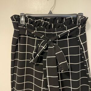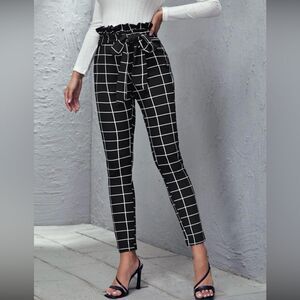 SHEIN MOOSTA Grid Print Paperbag Waist Belted Wide Leg Pants sz xl US 12 super soft flowy fabric smoke free