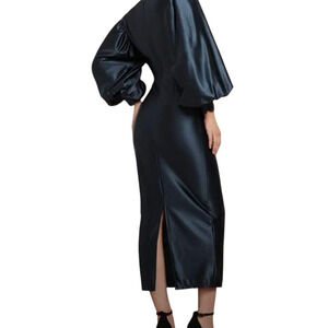 SHEIN Maxi Dress Womens Small Black Satin Long Puff Sleeve Deep V Button Gown