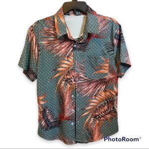 SHEIN Mens Plant Print Button Up Shirt Size Medium