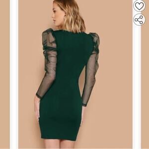 SHEIN Mesh Leg-of-mutton Sleeve Fitted Dress