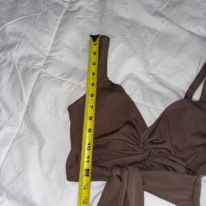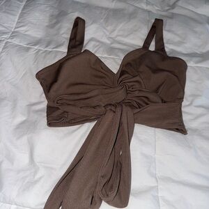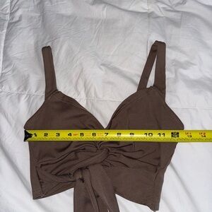 SHEIN Mocha Brown Ribbed Tie Wrap Crop Tank Top XS