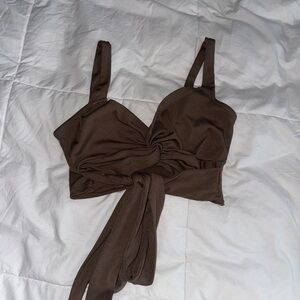 brown wrap top, twist front tank, tie crop top, XS crop tank, mocha SHEIN top, summer going out top, ribbed knit cami, adjustable wrap top, Y2K top