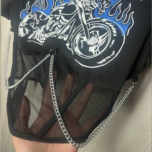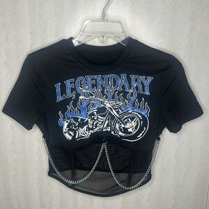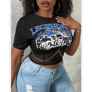 ❤️ 🆕 SHEIN Motorcycle And Letter Graphic Contrast Mesh Chain Detail Crop Top S