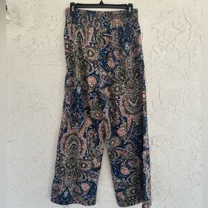 Elegant wide leg pants with vibrant paisley pattern. Ideal for fashionable events.