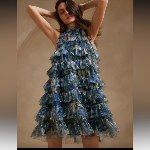 Chic mini dress with vibrant ruffles. Perfect for a bold look. Only worn once.