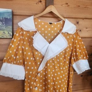 SHEIN 💜 Mulvari Polka Dot Statement Collar Asymmetric Dress Yellow Plus 20 / 4X