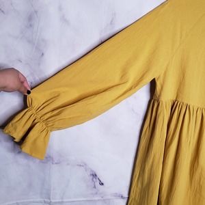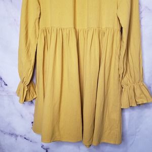 SHEIN Mustard Yellow Long Sleeve BabyDoll Mini Dress XS
