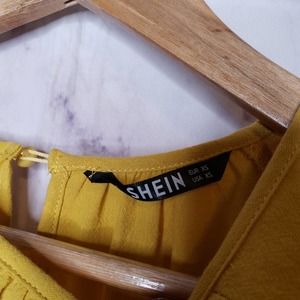 SHEIN Mustard Yellow Long Sleeve BabyDoll Mini Dress