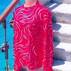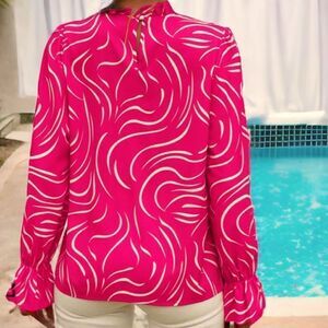 SHEIN NEW HOT PINK LUNE ALLOVER PRINT FLOUNCE SLEEVE FULL NECK BLOUSE TOP LARGE
