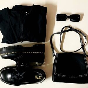 Classic black maxi dress with 4 faux buttons down the neckline to the waist, a v-neck, shorts sleeves, and a zipper down the back. This does not have any stretch, so please refer to approximate measurements shown in photos. This can be paired with platform Docs for a grungy or a goth look. Can also be worn in the office with a cute flat or pump and cardigan. New without tags. Never been worn. Feel free to ask questions or make an offer!