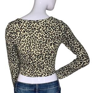 SHEIN NWOT Crop Top Animal Print Long Sleeve Button Down Size S