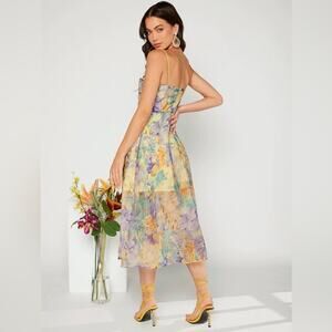 SHEIN NWT Size 6 (Medium) Floral Print Water Color Sheer Overlay Cami Midi Dress