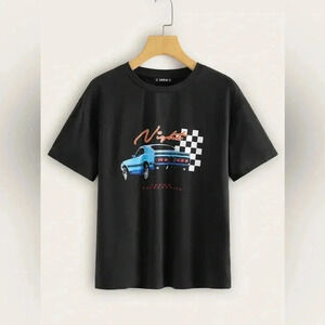 SHEIN Night Racing Car Black Graphic T-Shirt Size Medium