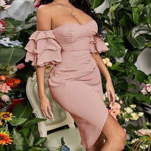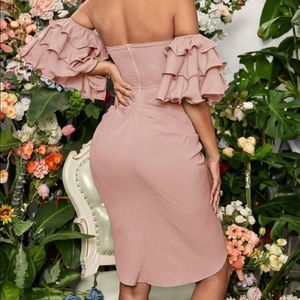 SHEIN - Off The Shoulder Layered Sleeve Bodycon Dress - M(6) - Mauve Pink